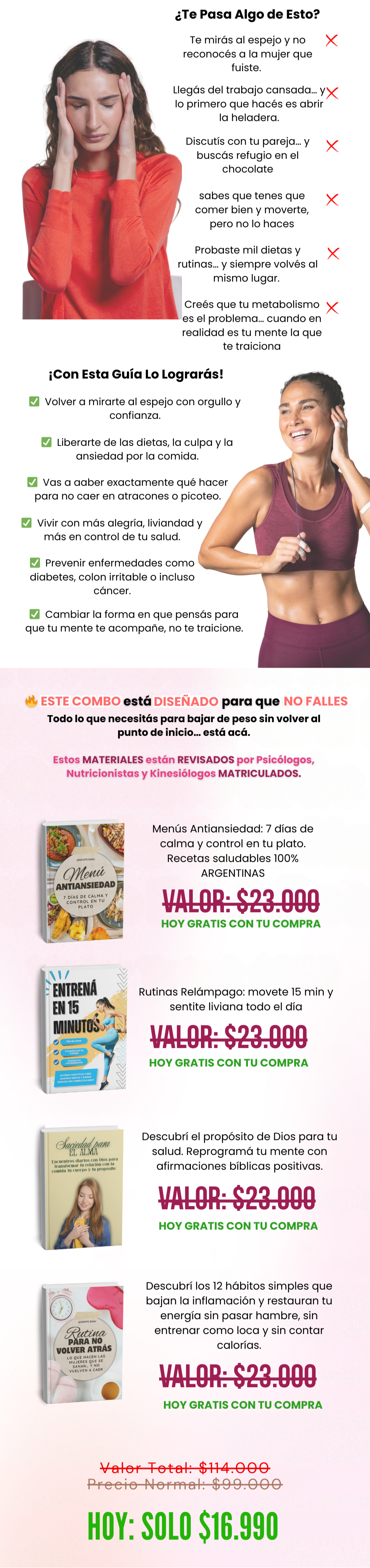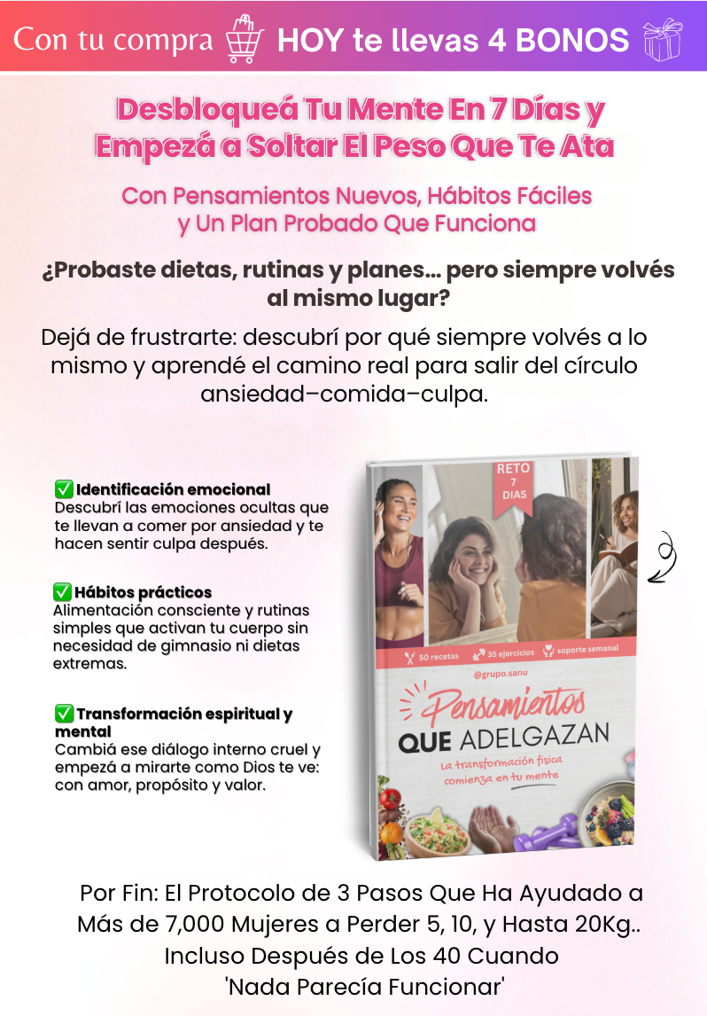 No. Este no es un plan de dieta estricta. Vas a aprender a comer alimentos reales, sabrosos y nutritivos que te dejan satisfecha y, al mismo tiempo, ayudan a tu cuerpo a quemar grasa. El foco es que puedas sostenerlo a largo plazo, sin rebotes ni ansiedad por comer.